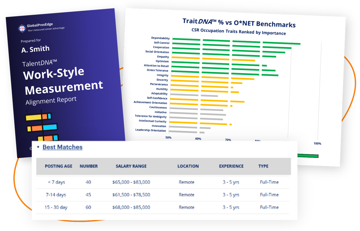 - TraitDNA™ measures work-style traits linked to success across over 1900 occupations.