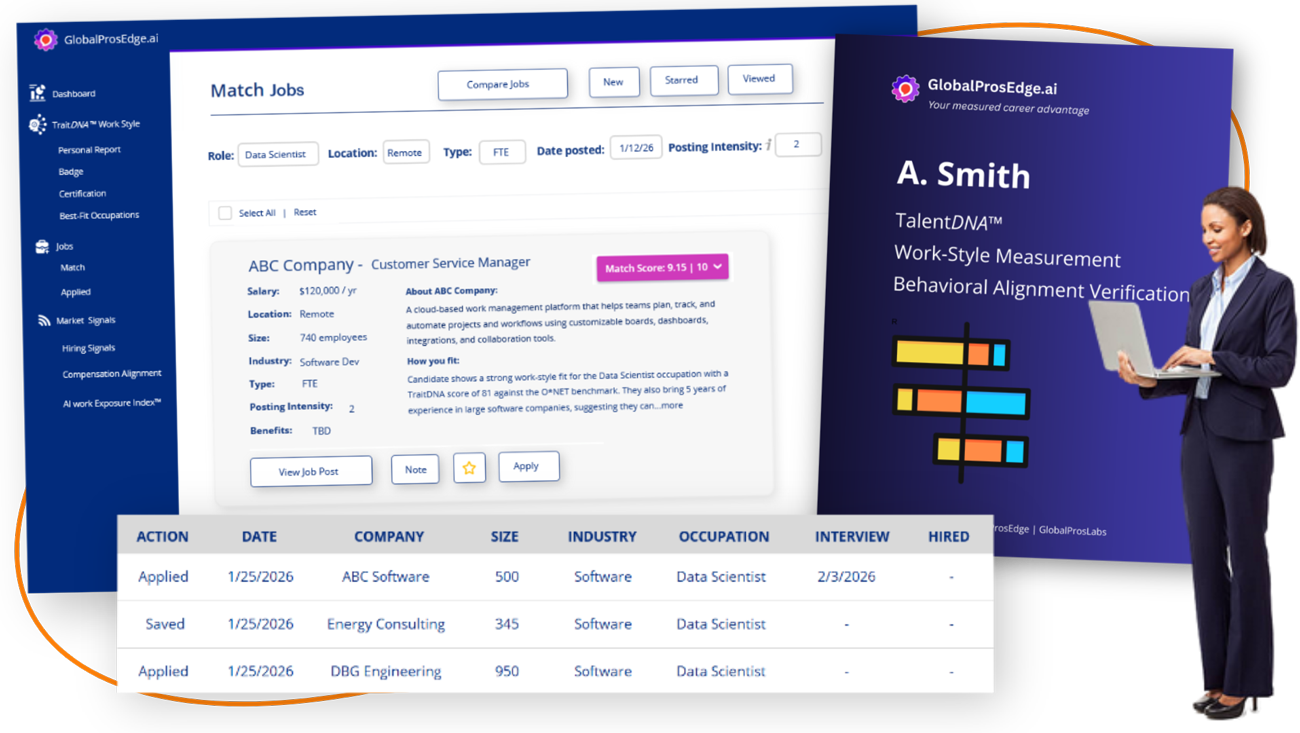 Align your measured work-style strengths and live hiring signals with 95%+ of U.S. jobs