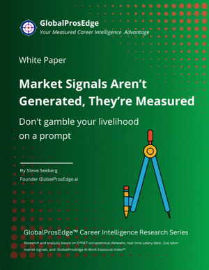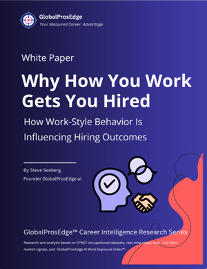 GlobalProsEdge computes work-style fit and market conditions using verified occupation databases, live job market data, and a curated data set of AI affected tasks.